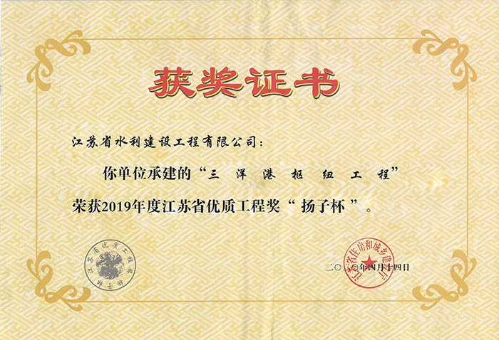 2019年度江蘇省優(yōu)質(zhì)工程獎“揚子杯”